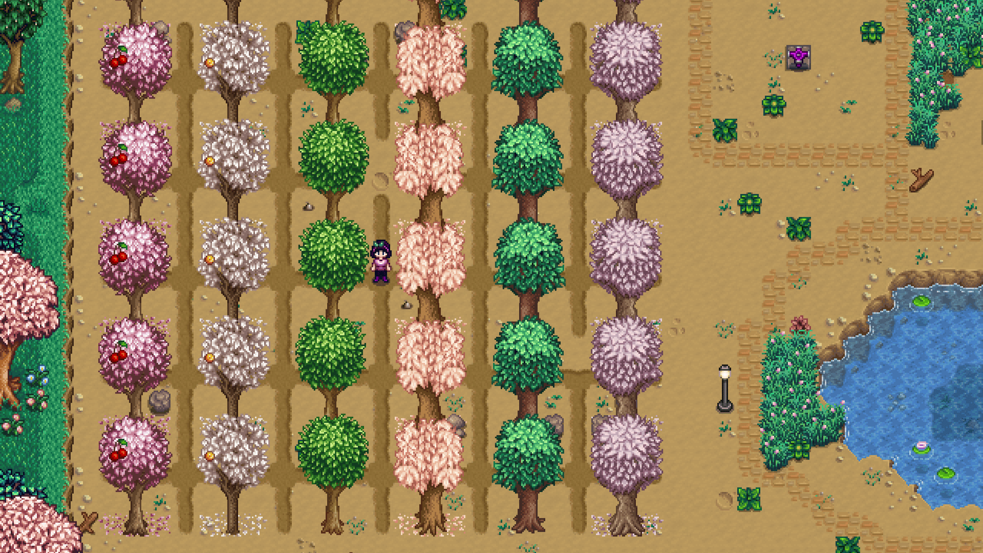 Stardew Valley Trees In Greenhouse. an overhead view of a garden with lots of plants and flowers on it, including trees The perfect greenhouse layout can handle 18 fruit trees and 116 plants, using 6 iridium sprinklers When choosing fruit trees for your greenhouse layout in Stardew Valley, focus on two main factors: the yield and the growth rate